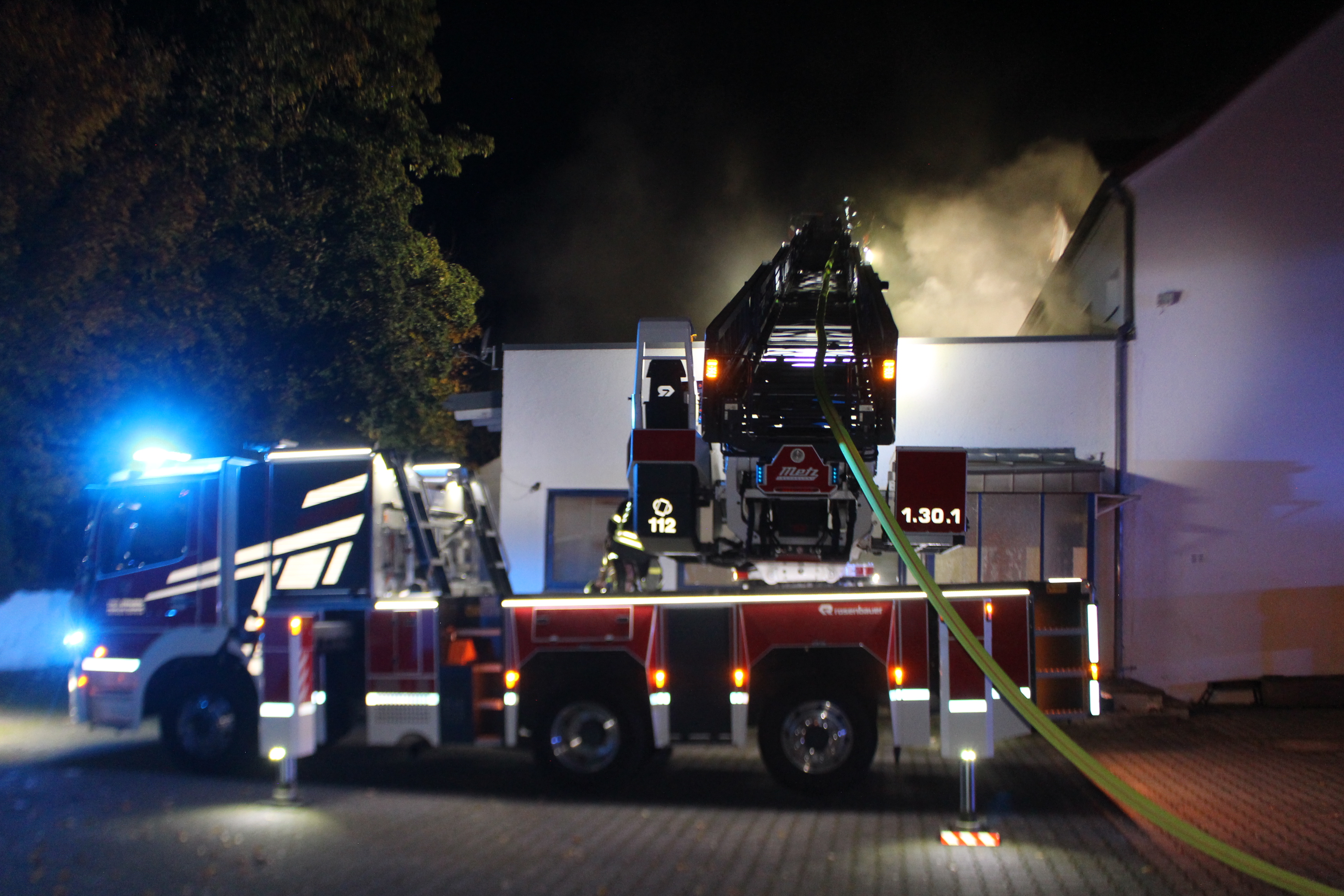 Durch den Rettungsdienst wurden die Verletzten weiter versorgt und in das Klinikum gebracht. Im weiteren Verlauf musste das Dach geöffnet werden, damit der Rauch abziehen konnte und alle Glutnester erreicht werden konnten.